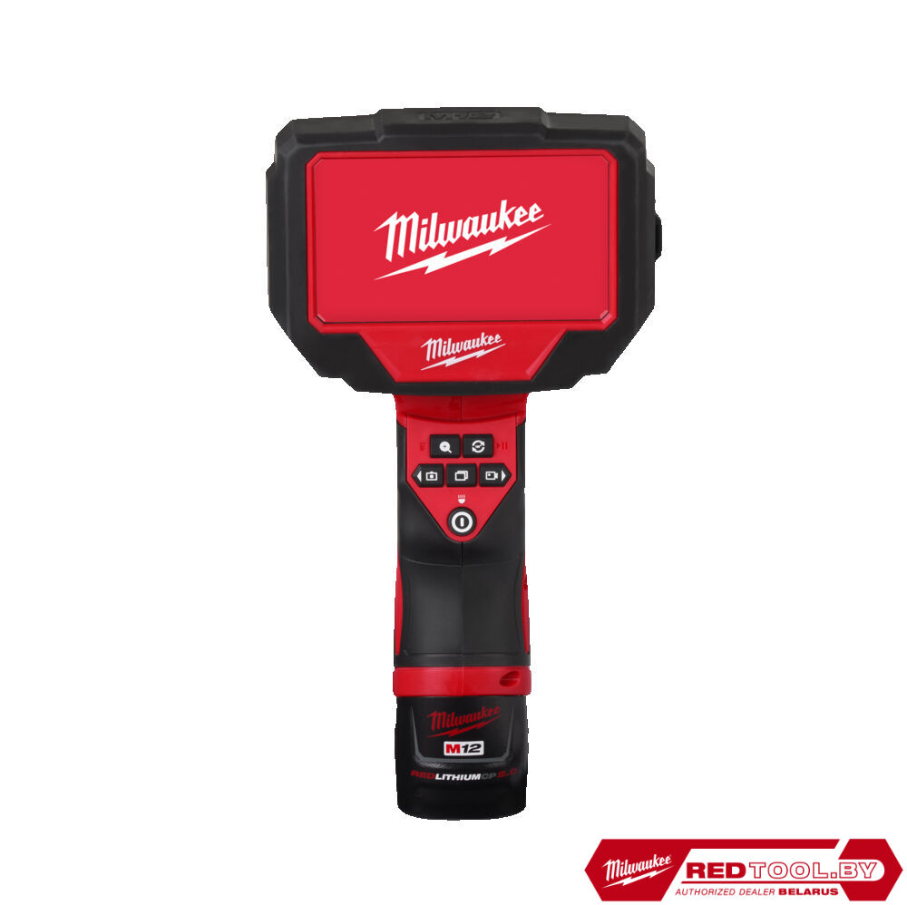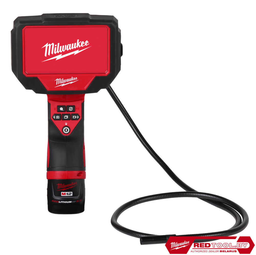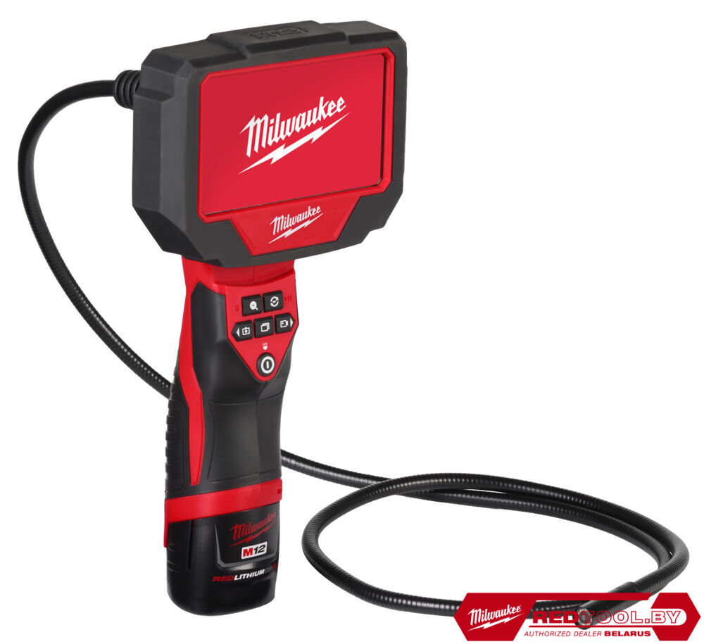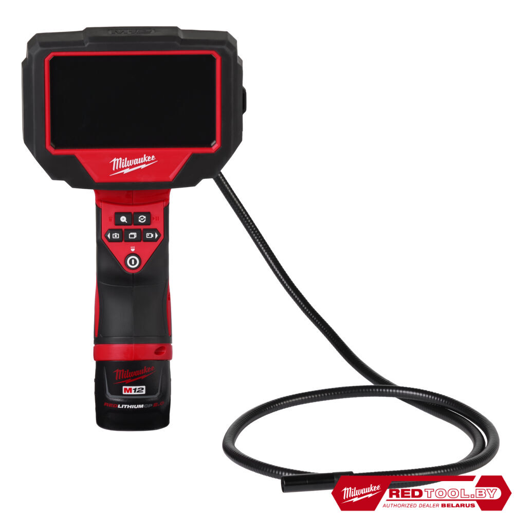 - 1 х M12 B2 аккумулятор, C12 C зарядное устройство, крюк, магнит, зеркало, кабель 1,2 м, карта памяти micro SD 32 ГБ