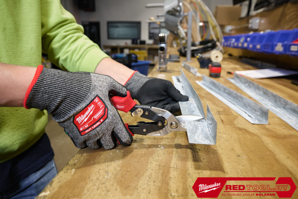 - Прорези для большого и указательного пальцев обеспечивают повышенный комфорт и снижают усталость. Позволяет пользователю легко проталкивать листовой металл, снижая риск порезов.