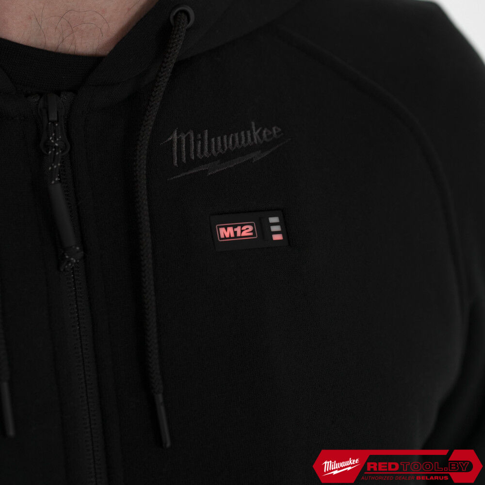- Толстовка с подогревом M12™, работающая от аккумулятора M12™ с нагревательными элементами из углеродного волокна, создает и распределяет тепло по груди и спине.